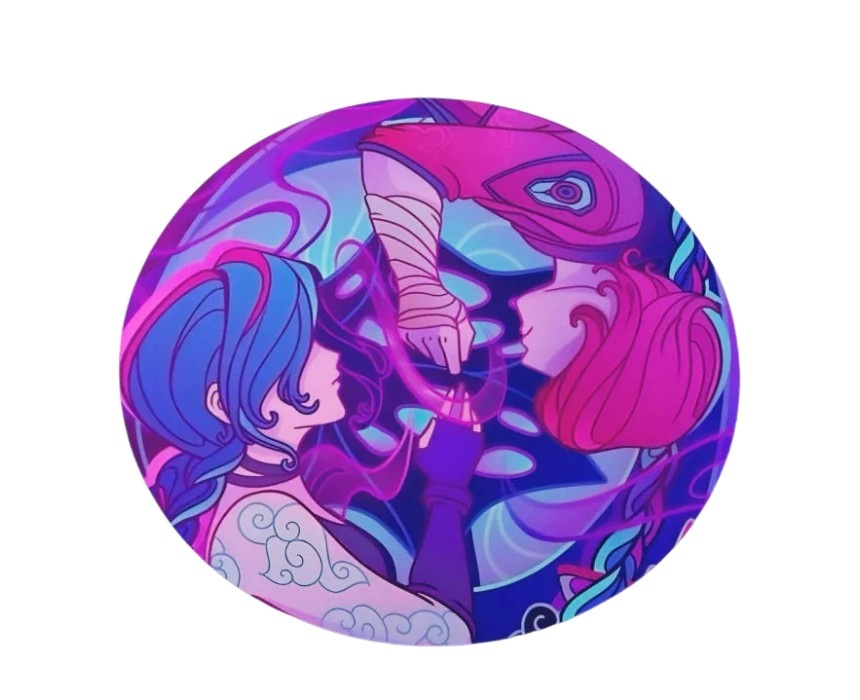 This Arcane inspired coaster featuring Vi and Jinx protects surfaces from heat, moisture, and spills while adding a dynamic animated touch to any desk or coffee table. Crafted from durable, easy to clean material, it provides a stable base for mugs and glasses and fits perfectly into gaming or fandom themed setups. Ideal for daily use, it can be styled with matching decor to create a bold and cohesive display.