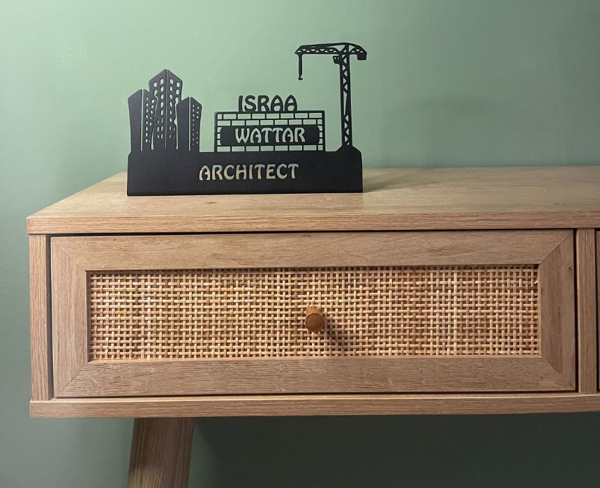 The Architect Desk Plate is a sleek desk display available in medium size (up to 25 cm) and large size (up to 35 cm). Perfect for architects and design professionals, it adds a sophisticated and creative touch to any office or workspace.