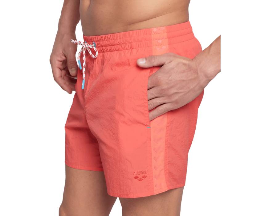 Arena men beachwear Team Stripe solid short with a 36.5 cm length delivers a relaxed and comfortable fit designed for beach and casual summer wear. Its lightweight design ensures easy movement in and out of the water while maintaining a sporty look. Pair it with a t shirt or tank top and sandals for an effortless warm weather outfit.