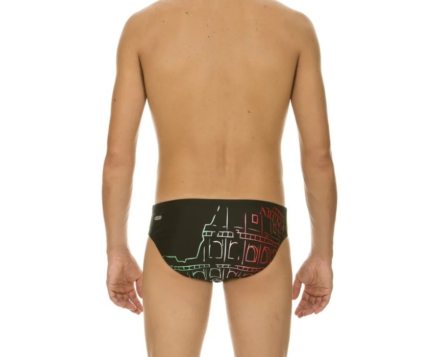 Arena men training swimwear brief Colosseum is designed for high performance and comfort, offering a secure fit ideal for intense swim training. With a 5.5cm length and streamlined cut, it ensures maximum freedom of movement in the water, making it suitable for competitive and regular practice sessions. Pair it with goggles and a swim cap for a focused and professional swim look.