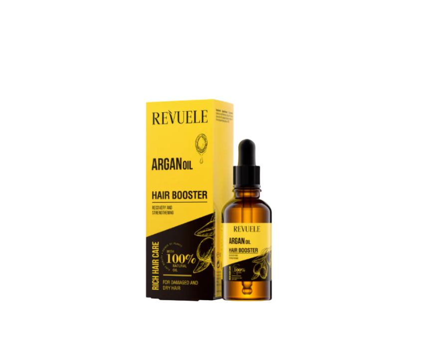 Revuele Argan Oil Hair Booster delivers deep nourishment and repair for dry, damaged hair, targeting split ends and restoring elasticity. Enriched with argan oil, it enhances shine, strengthens hair, and improves overall manageability. Apply a few drops to clean, damp or dry hair for smooth, healthy-looking ends without rinsing.