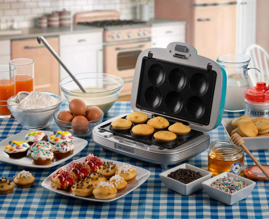 The Ariete 3-in-1 Sandwich and Cookies Maker is a versatile kitchen appliance designed for making toasted sandwiches, cookies, and snacks with interchangeable plates. Its compact, user friendly design styles neatly on any countertop, adding a playful yet practical touch to modern kitchens.