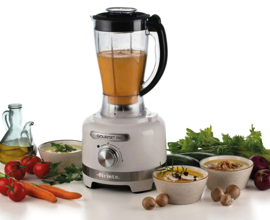 The Ariete Moderna Food Processor 3L combines 1000W of power with multifunctional design for blending, juicing, and food processing. Its large 3-liter capacity and included attachments make preparing smoothies, sauces, and fresh juices effortless, while its sleek design complements any modern kitchen countertop.