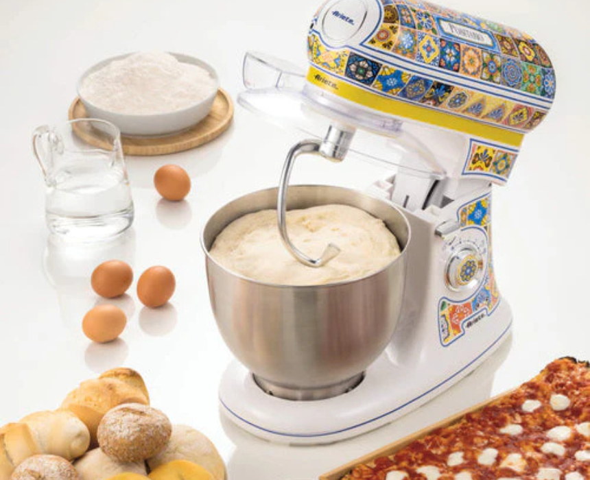 The Ariete Positano Kitchen Machine 5.5L – 1200W Stand Mixer offers powerful performance and versatility for all your baking and cooking needs. Its large 5.5L bowl and durable design make mixing, whisking, and kneading effortless, while the stylish finish complements any kitchen. Ideal for home bakers seeking efficiency, reliability, and professional-quality results in one appliance.
