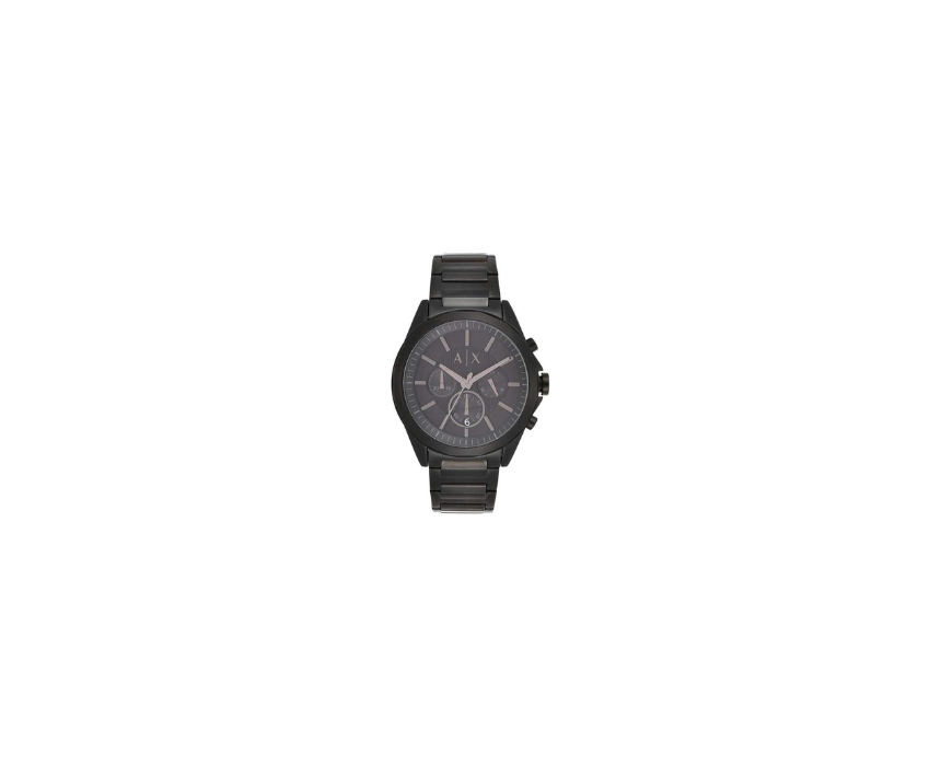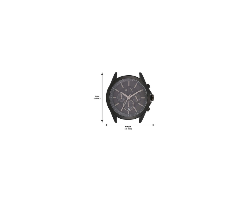 The Armani Exchange watch features a 44mm round black stainless steel case, scratch resistant crystal, black dial, and chronograph movement for precise timekeeping. Water resistant up to 50 meters, it is suitable for shallow swimming and everyday wear. Inspired by urban and metropolitan lifestyles, this bold timepiece combines rugged style with modern elegance, perfect for trendsetters seeking a distinctive accessory.