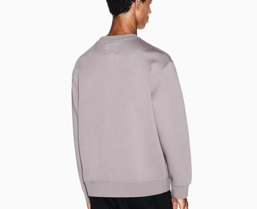 This grey sweatshirt blends chic minimalism with everyday comfort, featuring a printed pattern, long sleeves, and a classic round neckline for a relaxed urban style. Made from a soft fabric blend of 79 percent cotton, 17 percent polyester, and 4 percent elastane, it offers flexibility and durability for daily wear. The model is 187 cm tall and wears size Medium, and it pairs effortlessly with jeans, joggers, or streetwear outfits.
