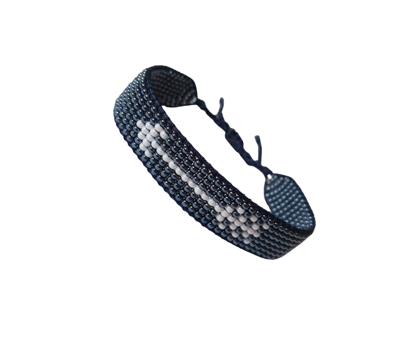 Arow Bracelet is a handmade beaded bracelet featuring a classic navy blue and white bead combination. A versatile and stylish accessory perfect for everyday wear or gifting.