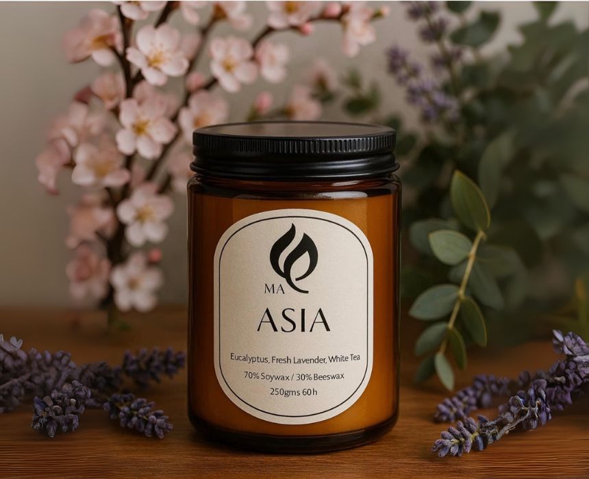 The Asia Candle 250g is a 100% organic jar candle made with 70% soy wax and 30% beeswax, infused with eucalyptus, white tea, and lavender for a soothing aroma. Inspired by Asian wellness rituals, it creates a calming atmosphere perfect for relaxation, meditation, or spa-like home settings. Its natural blend offers a clean burn, making it ideal for any room or occasion.