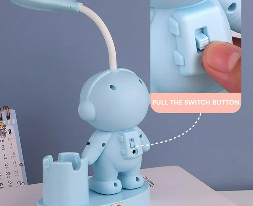 The astronaut desk lamp features a detailed astronaut figure holding an adjustable LED light, providing soft, warm illumination for desks, bedside tables, or study areas. Its modern, space inspired design adds a playful yet functional touch and pairs well with contemporary or themed room décor for a stylish setup.