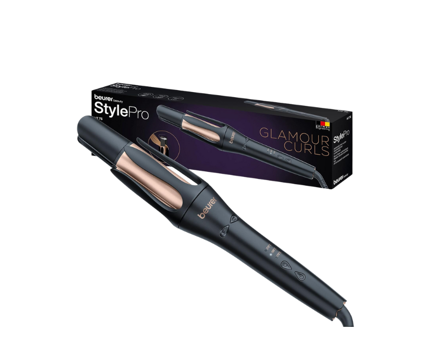 The Beurer HT 75 Automatic Curling Iron features an open curl chamber for safe, tangle-free styling and a lightweight design for easy handling. With three adjustable temperature settings (170°C, 190°C, 210°C), a smart timer, and quadruple ion output, it delivers smooth, shiny, and healthy-looking curls. The curling iron also allows two curl directions for versatile styling, making it perfect for achieving salon-quality results at home.