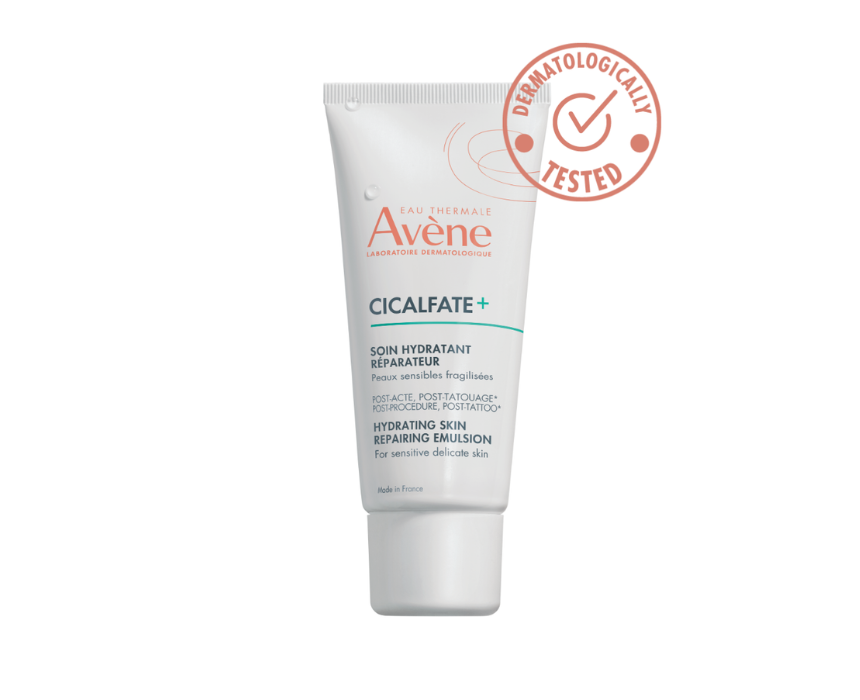 Avène Cicalfate+ Hydrating Skin Recovery Emulsion soothes and deeply hydrates fragile or sensitized skin for 24 hours, helping repair the skin barrier within 48 hours after dermatological procedures or tattoos. Its gentle, fragrance-free formula is suitable for sensitive skin and promotes rapid recovery.