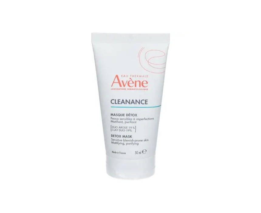 Cleanance Masque Detox 50 ml by Avène is a mattifying and purifying mask designed for oily, blemish-prone, and sensitive skin. Its blend of absorbent clays, exfoliating perlite, and soothing thermal spring water removes excess sebum, refines pores, and calms the skin in just 5 minutes. Apply a thin layer to clean, dry skin, leave on for 5 minutes, then rinse; use 1–2 times per week for a clearer, balanced complexion.
