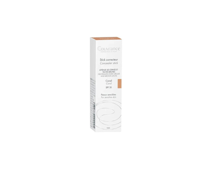 Even out your complexion with Avene Couvrance Coral Corrector Stick. Its coral tint conceals dark spots and imperfections while SPF30 shields your skin from harmful sun exposure.