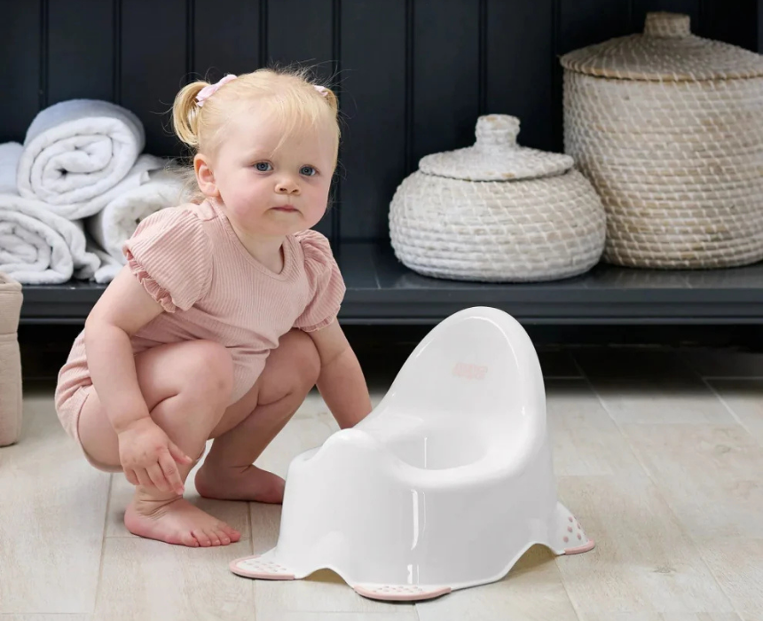 Designed to make potty training easier and more comfortable, this baby potty features a supportive high back that encourages confident use. Its anti slip base helps keep it stable during use, while the built in splash guard reduces mess for a cleaner experience. Lightweight and easy to empty, it is a practical everyday solution for early toilet training at home.