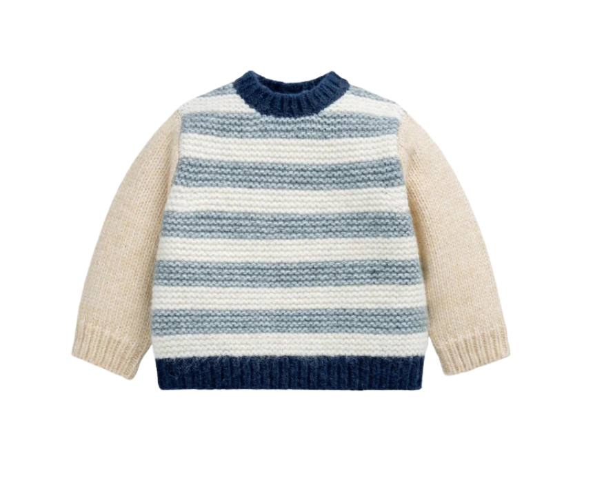 This baby boys colour block jumper and leggings set features soft seasonal colours in a cosy knitted 2-piece design. The long-sleeved jumper has a back button opening for easy dressing, while the matching leggings include a stretchy waistband for comfort and a secure fit. Perfect for everyday wear, it combines style and practicality for little ones.