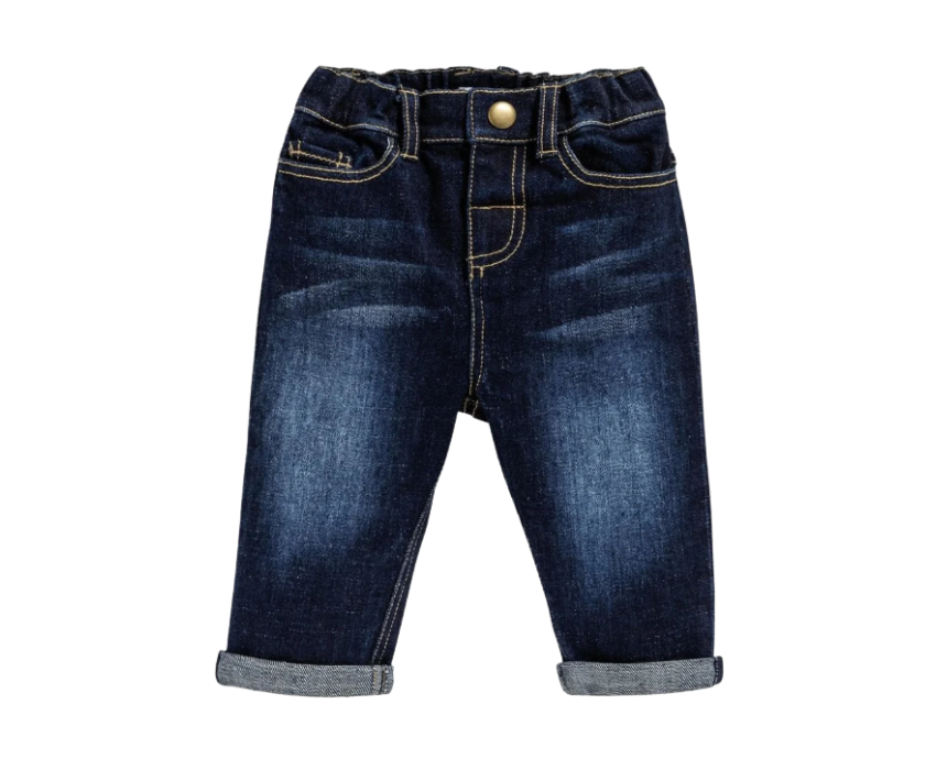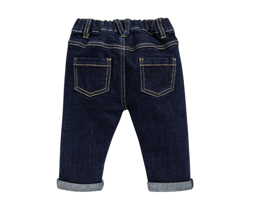 These baby boys denim jeans are crafted from soft, durable fabric for everyday wear. Featuring an elasticated waistband for a flexible fit, classic five-pocket styling, and a straight-leg cut, they combine comfort and timeless style. Perfect for casual outings or playtime, they pair easily with T-shirts, jumpers, or shirts for versatile looks.