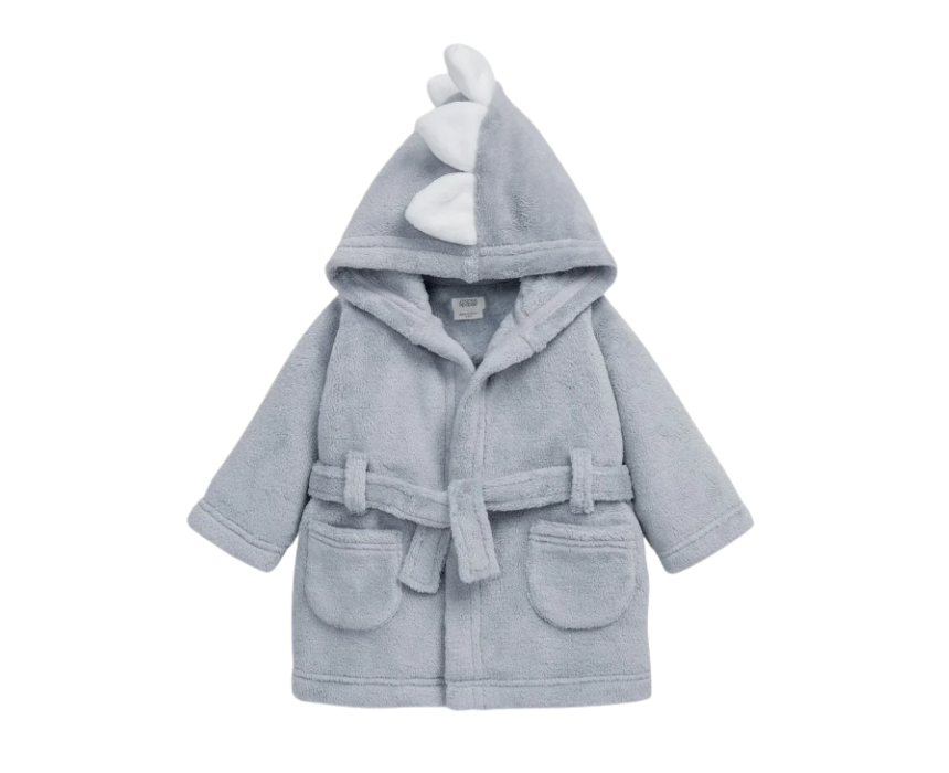 This baby boys blue dinosaur dressing gown is made from soft, cozy fabric to keep little ones warm after bath time or during chilly mornings. Featuring fun dinosaur detailing, a comfortable fit, and a waist tie for easy fastening, it’s perfect for everyday use at home. Soft, practical, and playful, it makes getting dressed fun and comfy.