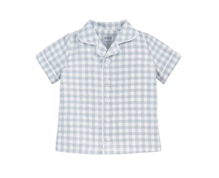 These baby boys blue gingham pyjamas are made from soft, breathable fabric to keep little ones cozy at bedtime. The set features a long-sleeved top with a collared neckline and matching bottoms with an elasticated waistband for comfort and ease of movement. Perfect for everyday nights or naptime, they combine classic style with all-night comfort.