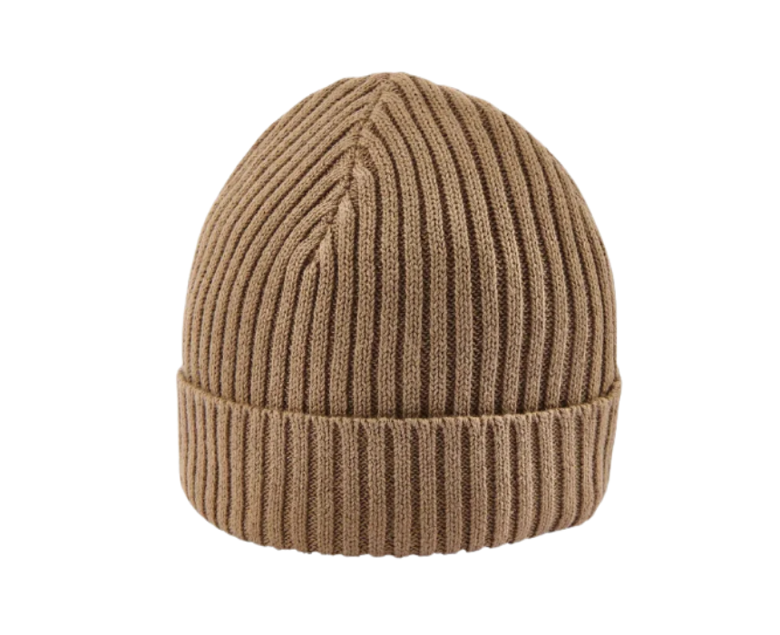 This baby boys beige stripe hat is a stylish and comfy knit beanie, designed with a fabric turnback for extra warmth. Perfect for cooler days, it keeps little heads cozy while adding a cute finishing touch to any outfit.