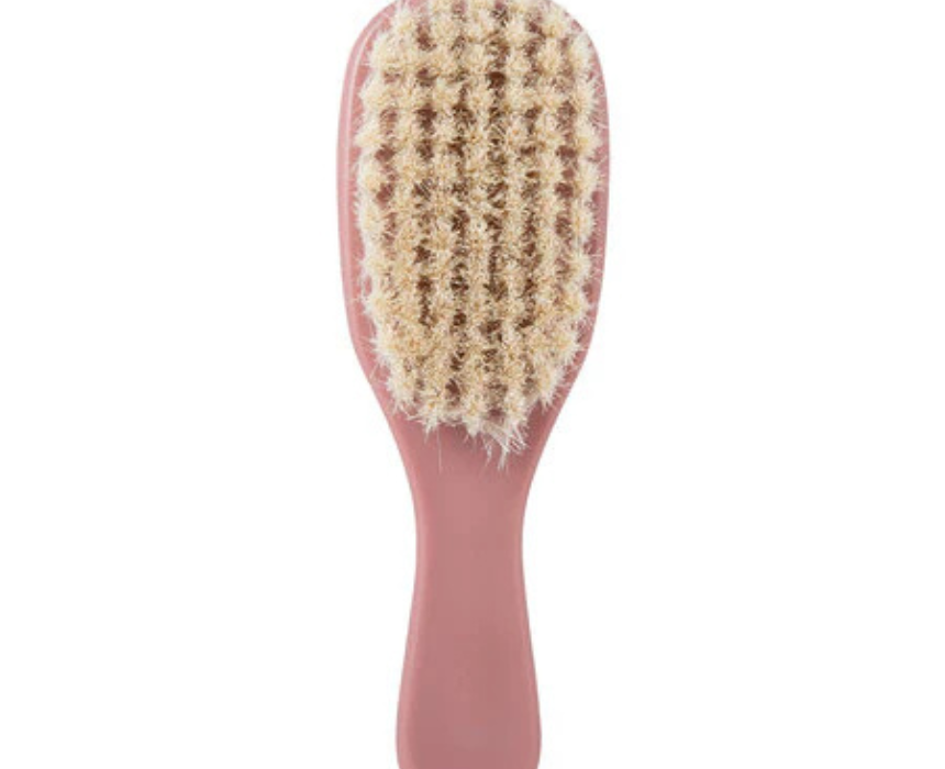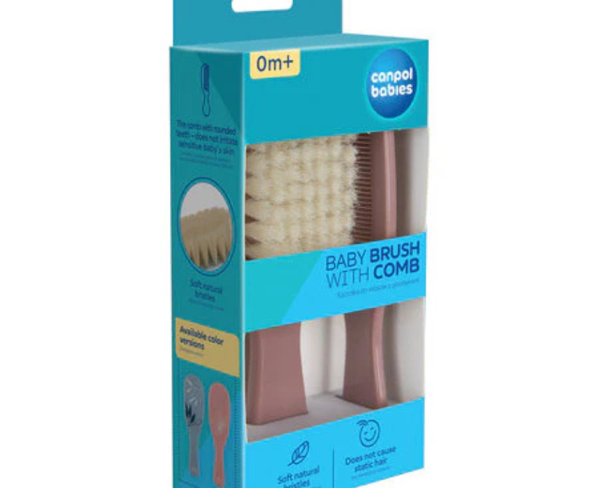 This baby hair care set includes a soft natural bristle brush and a rounded-tooth comb designed for gentle daily grooming from birth. The brush softly massages the scalp to help strengthen hair, while the comb protects delicate skin from irritation, making it ideal for newborns and infants. Available in multiple colors, it is best cleaned gently and should not be exposed to boiling water.