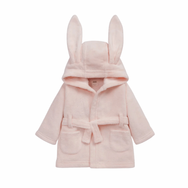 This baby pink bunny Christmas jumper features the Beau Bunny character with a 3D bow detail, scallop-edged collar, cuffs, and hem, and a back button opening. Long-sleeved and soft, it keeps little ones cozy and festive during the holiday season.