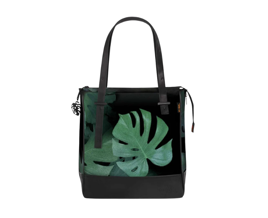 This stylish baby changing bag features a jungle-inspired design and is created for practical everyday use while maintaining a fashionable look. It can be converted into a backpack and includes multiple interior pockets for organized storage of baby essentials. With a changing mat, insulated bottle holder, wet compartment, and removable clutch, it offers everything needed for convenient feeding and diaper changes on the go.