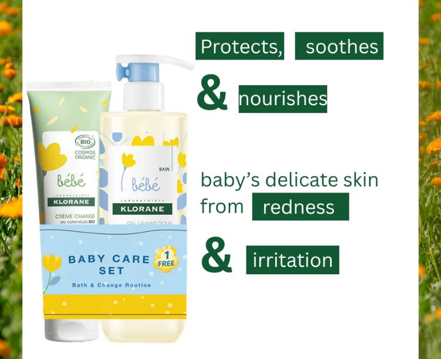 This baby care set includes a gentle cleansing gel and a nappy cream designed to protect and care for delicate skin during daily routines. The cleansing gel softly washes skin and hair without drying, while the nappy cream helps soothe and protect sensitive areas from irritation. Ideal for everyday use, it supports a complete bath and diaper care routine, leaving baby’s skin clean, comfortable, and nourished.