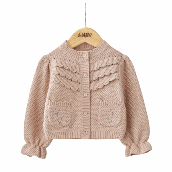 These baby floral bloom spot joggers feature a soft tulip print, a paper bag waistband, ribbed cuffs, and patch pockets with crochet lace trim. Cozy and stylish, they’re perfect for everyday wear and little adventures.