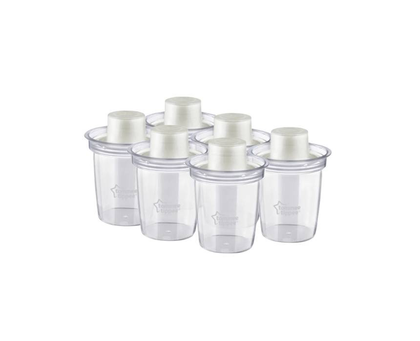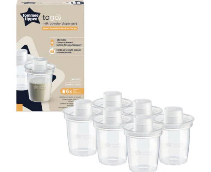 The product includes six baby formula dispensers designed to pre-measure milk powder for quick and easy bottle preparation at home or while travelling. Each dispenser holds up to eight scoops, allowing caregivers to portion feeds in advance for day or night use. Its compact design fits neatly into compatible baby bottle necks, helping save space, reduce waste, and keep formula stored hygienically in a changing bag or at home.