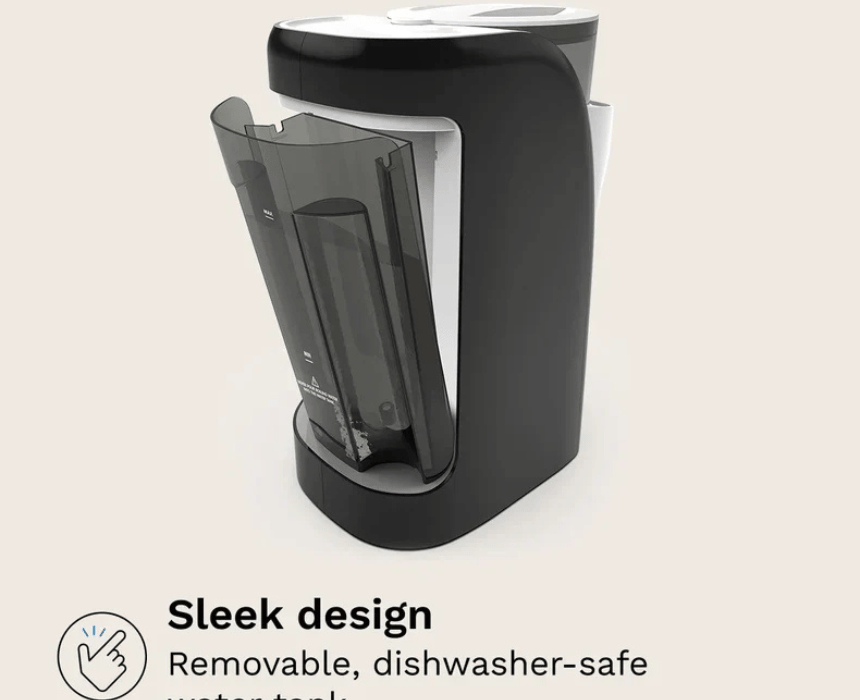 This smart baby formula maker automatically mixes, warms, and dispenses formula or water in seconds, ensuring a consistent, bubble free feed every time. It offers fully customizable settings with three temperature options and adjustable portions from 2 to 10 oz, delivering faster, more hygienic accuracy than manual preparation while saving the last used settings for convenience. Designed for everyday use, it fits most bottles and formula brands and should be used as part of a clean, organized feeding station setup.