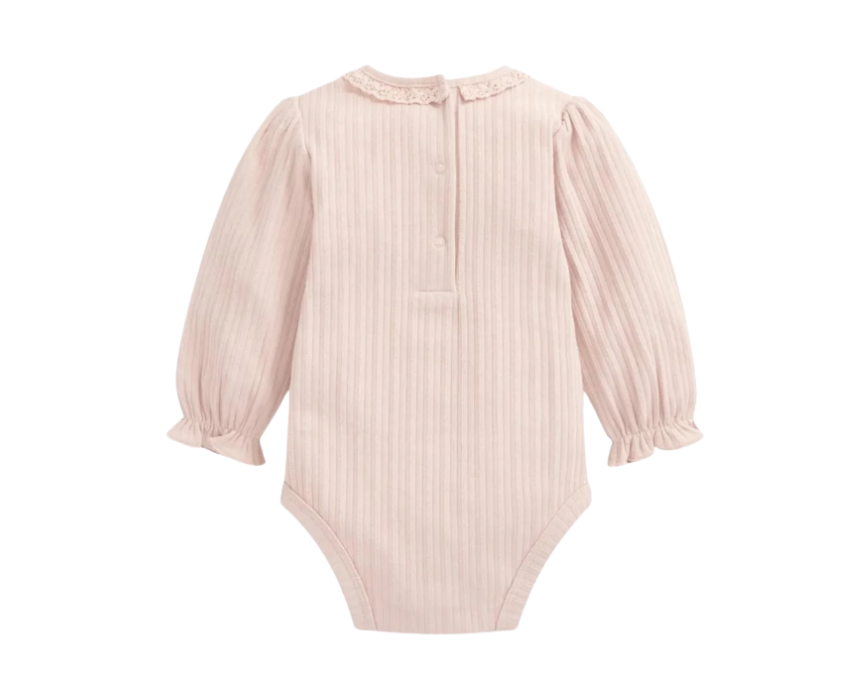 Baby Girls Lace Trim Bodysuit in Pink