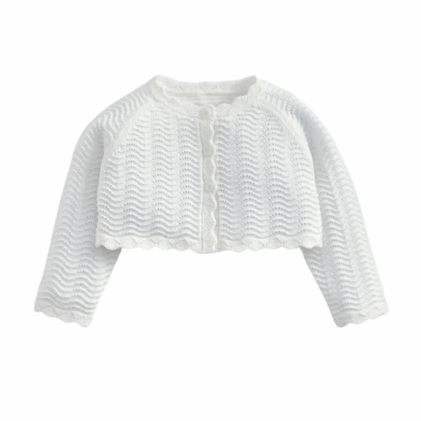 This baby jacquard floral knit hat features a charming pom pom detail and a ribbed scallop turn-back edge. Made from 100% soft cotton, it adds a cozy and stylish finishing touch to any outfit.