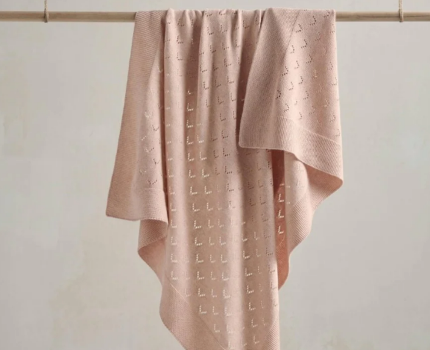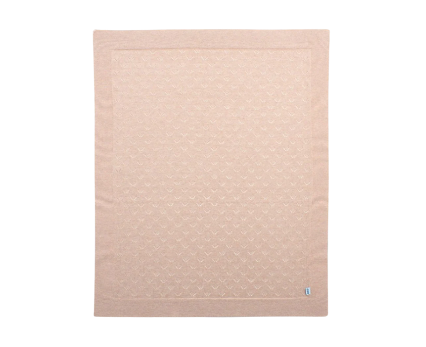 This soft knitted baby blanket in a gentle pink tone offers warmth, comfort, and everyday versatility for little ones. Designed with a delicate pointelle texture, it provides a cozy and breathable feel against sensitive skin. Perfect for use in the nursery, pram, or during naps, it adds both comfort and a charming touch to any setting.