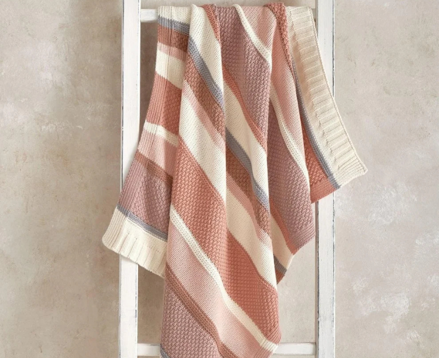 The knitted blanket features a soft, chunky cotton design with a stylish color block pattern, offering a cozy and gentle feel perfect for newborn comfort. Ideal for use in the nursery or on the go, it adds warmth and a touch of color to prams or cribs while remaining easy to care for with machine washability.