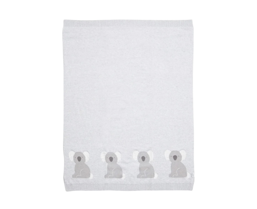 This knitted baby blanket features a charming koala design, offering soft comfort and warmth for everyday use. Made from 100 percent cotton, it is gentle on delicate skin while providing a breathable and cozy feel. Suitable for use in a cot, pram, or during cuddles, it is easy to care for with machine washable convenience.