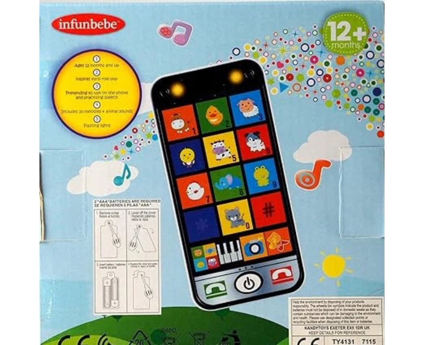 The Infunbebe Smart Phone is an interactive baby toy designed to encourage early learning through lights, sounds, and easy to press buttons that engage little hands. It supports sensory development and communication skills while offering fun on the go entertainment that pairs well with everyday baby essentials.