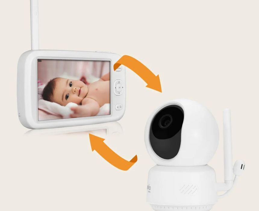 This advanced baby monitor features a Full HD 360-degree rotating camera with remote control, allowing you to keep a clear view of your baby at all times. With a 5 inch screen and smart app connectivity, you can monitor your child from multiple devices and locations. Equipped with motion and sound sensors, two way communication, night vision, and soothing lullabies, it offers complete peace of mind for both day and night care.