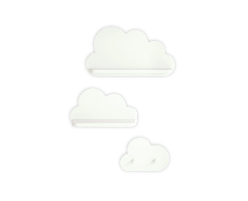This baby nursery wall storage set provides a practical and decorative solution for organizing and displaying essential items in a child’s room. It includes cloud-shaped shelves and coat hooks designed for storing toys, books, blankets, and clothing while keeping everything easily accessible. Made from sturdy materials with a modern finish, it helps maintain a tidy nursery while adding a playful decorative touch to the space.