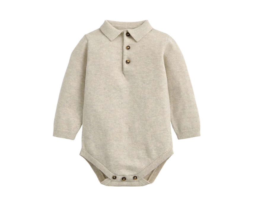 Be the first to review “Baby Oatmeal Knit Polo Bodysuit and Bottoms Set”