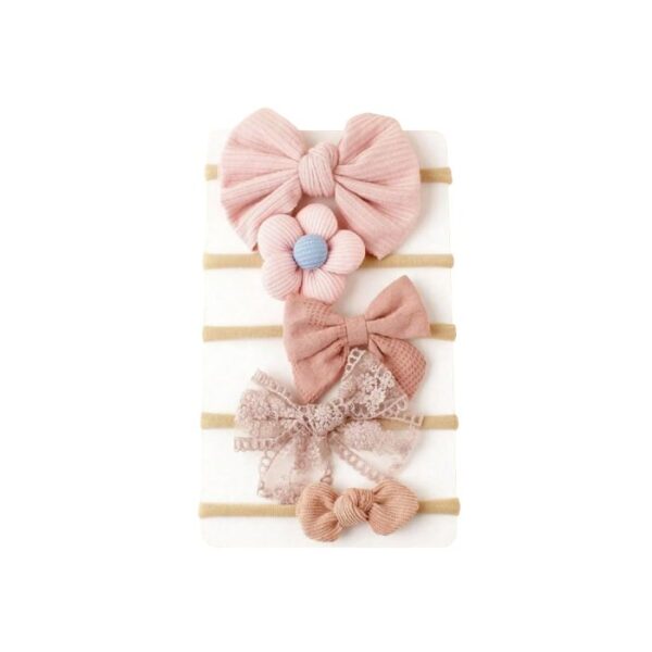 This 5-piece off-white baby headband set features a beautiful mix of florals, lace, bows, and heart accents. Made from soft, stretchy materials, each headband offers a gentle fit for all-day comfort and style. Ideal for baby photoshoots, special occasions, or everyday elegance with any outfit.