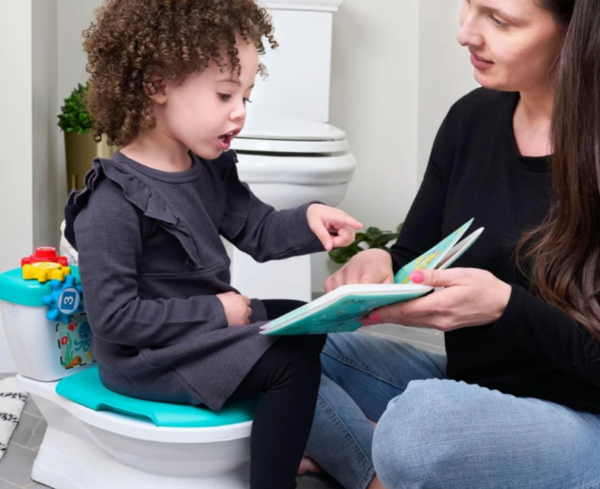 This 2-in-1 potty training system combines a standalone training potty with a detachable potty ring designed to support toddlers during toilet training. Suitable for children from 18 months, it features a removable pot for easy cleaning and a transition seat that fits most toilets for growing independence. Interactive sound effects and engaging elements help encourage learning through cause and effect while making potty training more motivating and comfortable.