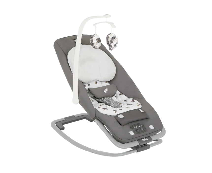 Designed for newborns, this baby rocker seat provides a comfortable and safe space with gentle rocking motion activated by baby movement or manual use. It includes calming vibration settings, soothing lullabies and nature sounds, and a soft newborn insert for added comfort and support. A removable play bar with soft toys encourages early interaction, while adjustable recline positions, a secure harness, and foldable design make it practical for feeding, resting, and daily use from birth up to toddler age.