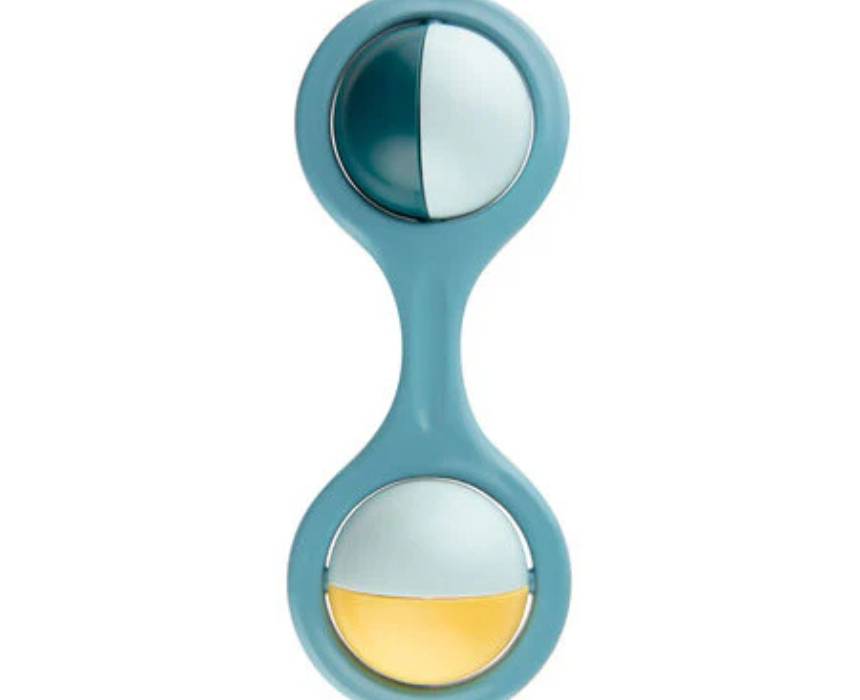 This baby rattle with rotating elements is designed as an ideal first toy, lightweight and easy for little hands to hold from birth. Its moving parts create a gentle rattling sound while contrasting colors stimulate visual development and keep babies engaged. Made from BPA free materials, it offers safe everyday play with simple care instructions.