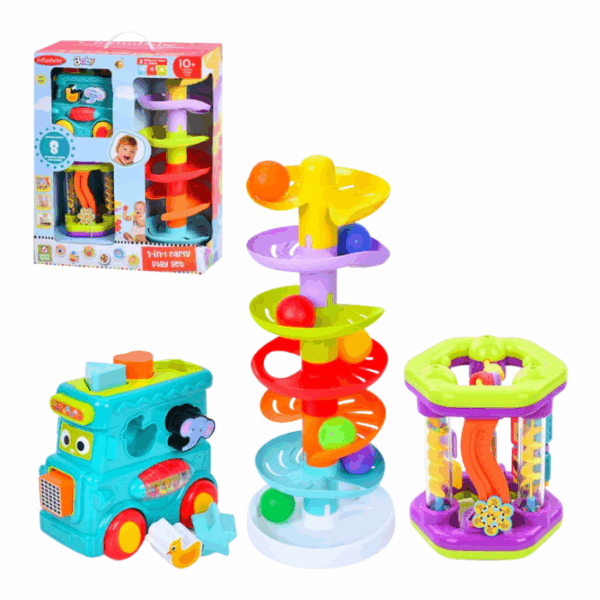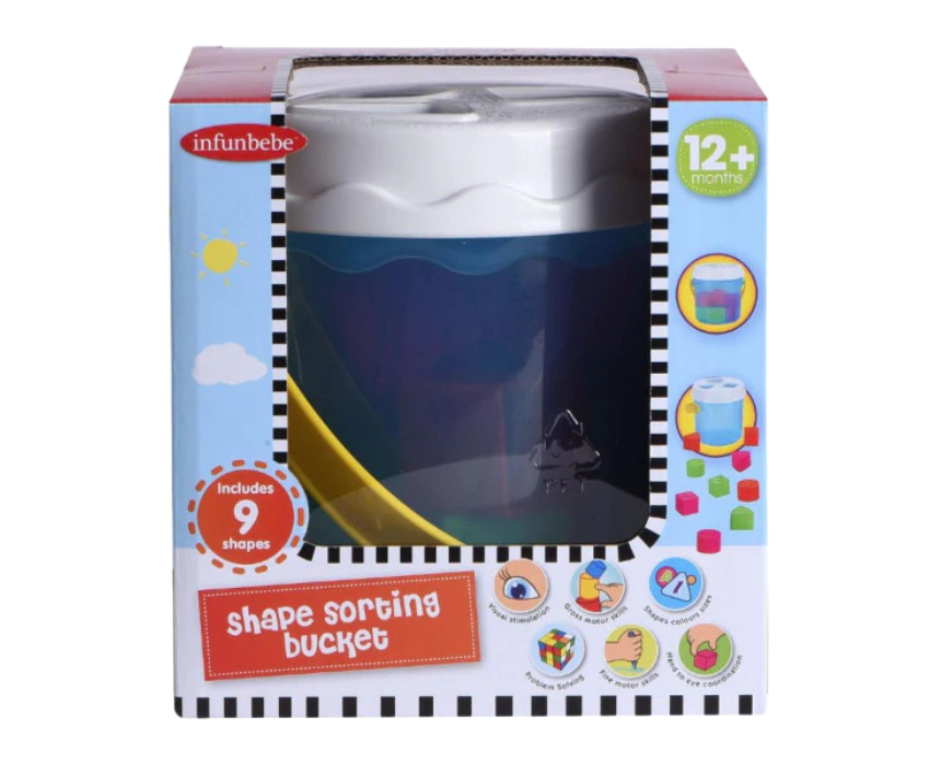 The Infunbebe Shape Sorting Bucket is an engaging baby activity toy designed to support early learning through colorful shape matching and hands on exploration. It helps develop fine motor skills, hand eye coordination, and problem solving abilities while offering fun indoor play that pairs well with everyday baby essentials.