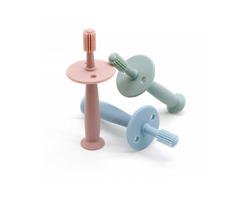 This toddler silicone toothbrush is made of soft, food-grade silicone that gently cleans and massages gums while helping children learn proper brushing habits. Its 360-degree cleaning design, removable safety guard, and suction base make it easy to use, hygienic, and ideal for daily oral care. Parents can let their child hold the non-slip handle and guide their brushing until they learn to use it independently, suitable for ages 6 months to 3 years old.