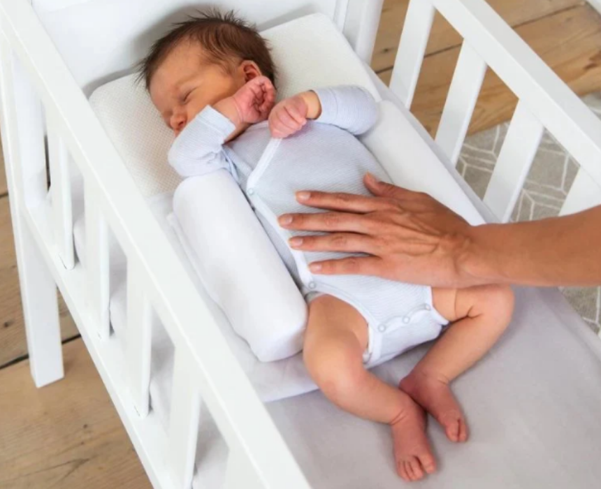 The supreme sleep small is a supportive back positioner designed to help baby lie comfortably on their back while reducing the risk of flat head syndrome. It features adjustable side rolls to adapt to the baby’s size, providing a secure and snug sleeping environment for everyday use at home or on the go.