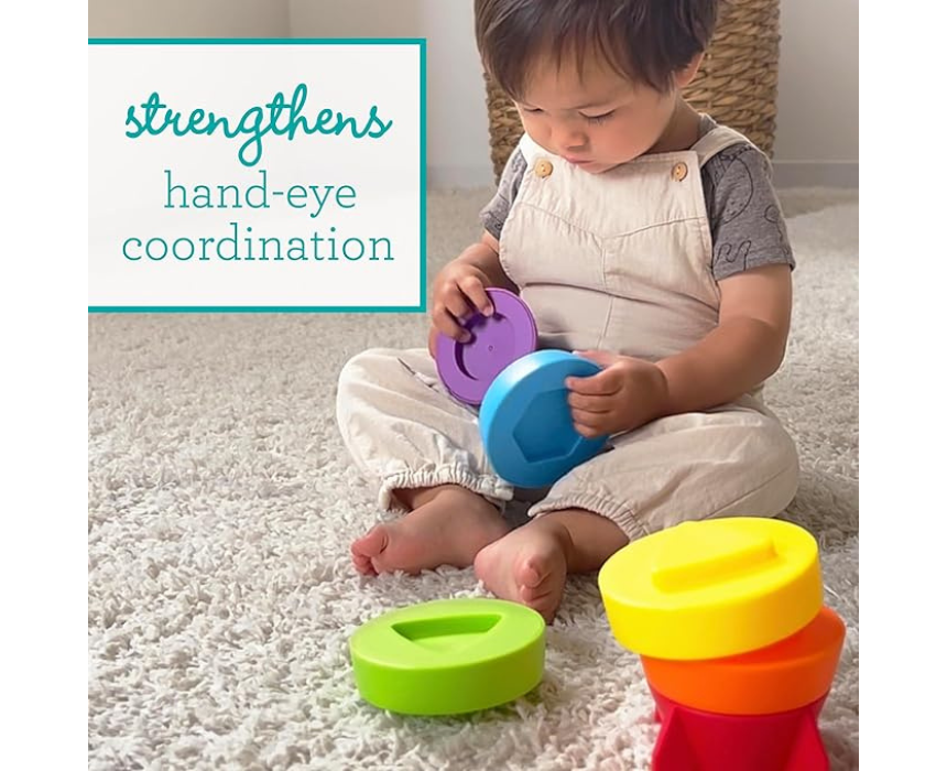 The Infantino Imagination Stackers Playset is a colorful and engaging building toy designed to encourage creativity and early development in young children. With easy to stack pieces, it helps improve fine motor skills, hand eye coordination, and problem solving abilities through hands on play. Perfect for everyday learning and fun, it pairs well with other activity toys to create an interactive and stimulating play environment.