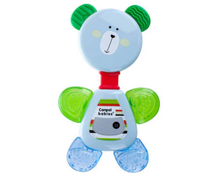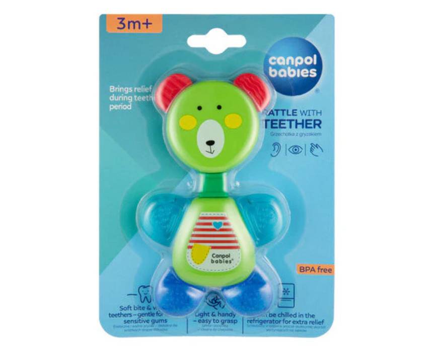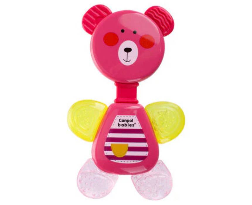 This baby teething rattle is lightweight and easy to hold, featuring rounded edges and soft chewy elements that soothe gums while encouraging safe play. Filled with microbiologically tested distilled water, it produces a gentle rattling sound and can be cooled in the refrigerator for added comfort during teething. Designed for babies from 3 months, it is made from BPA free materials and offers simple care for everyday use.