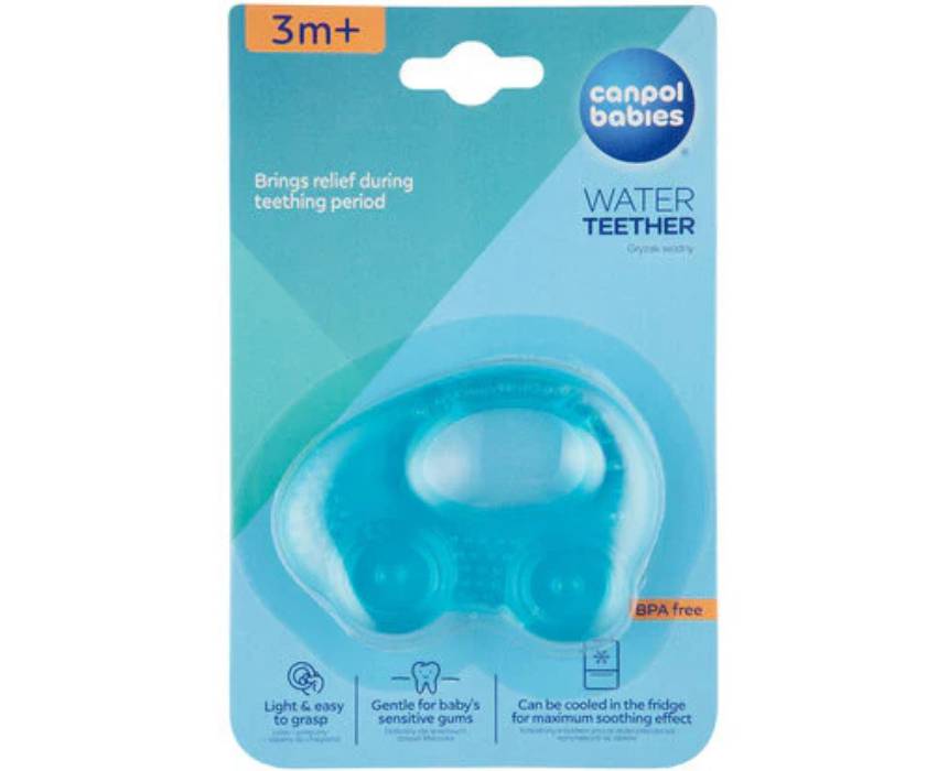 This car shaped water teether helps soothe teething discomfort with a soft, flexible design that gently adapts to a baby’s gums while supporting sensory and motor development. Lightweight and easy to grip, it can be chilled in the refrigerator for extra relief and is made from safe BPA free material filled with microbiologically tested distilled water, suitable for babies aged three months and above.