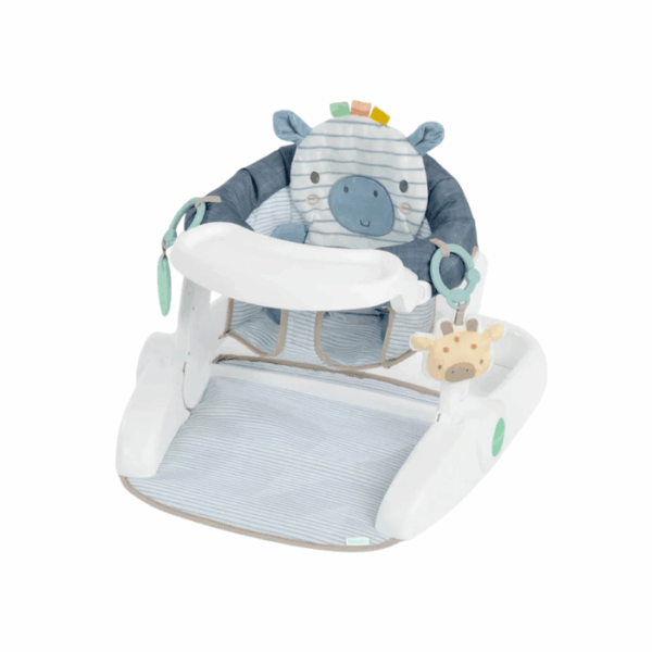 This baby tummy time pillow is designed to support early development by helping infants build neck and shoulder strength during supervised play. It features a soft cushioned base with engaging sensory elements such as crinkle textures, a rattle, squeaker, teether, and a baby-safe mirror to encourage exploration and interaction. Made from soft fabrics, it provides comfort while promoting motor skills and sensory development from an early age.